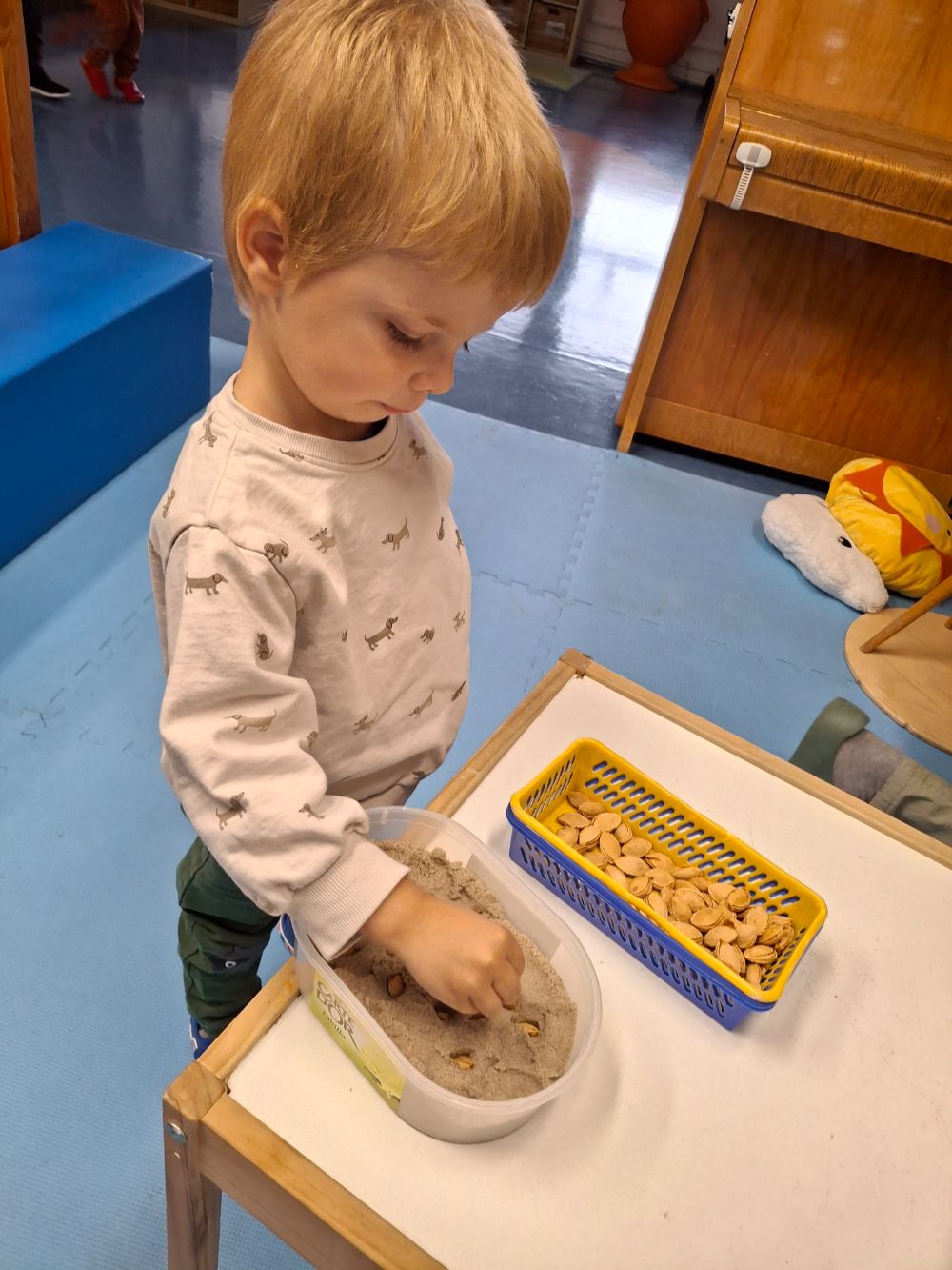 Jednotlivé činnosti zkouší pěkně společně, ale i v malých skupinkách, takže si vše mohou náležitě prožít a vychutnat. Celým dnem je doprovází režimové říkanky a písničky – nikdo pak není na pochybách z toho, co se bude dít a nemusí se ničeho bát. Aby všichni měli ještě větší jistotu, cítili se příjemně a také se mohli se všemi dobře dorozumět, využíváme ve třídě prvků strukturovaného učení a alternativní i augmentativní komunikace (Makaton, znak do řeči, piktogramy, komunikační knihy a tabulky).